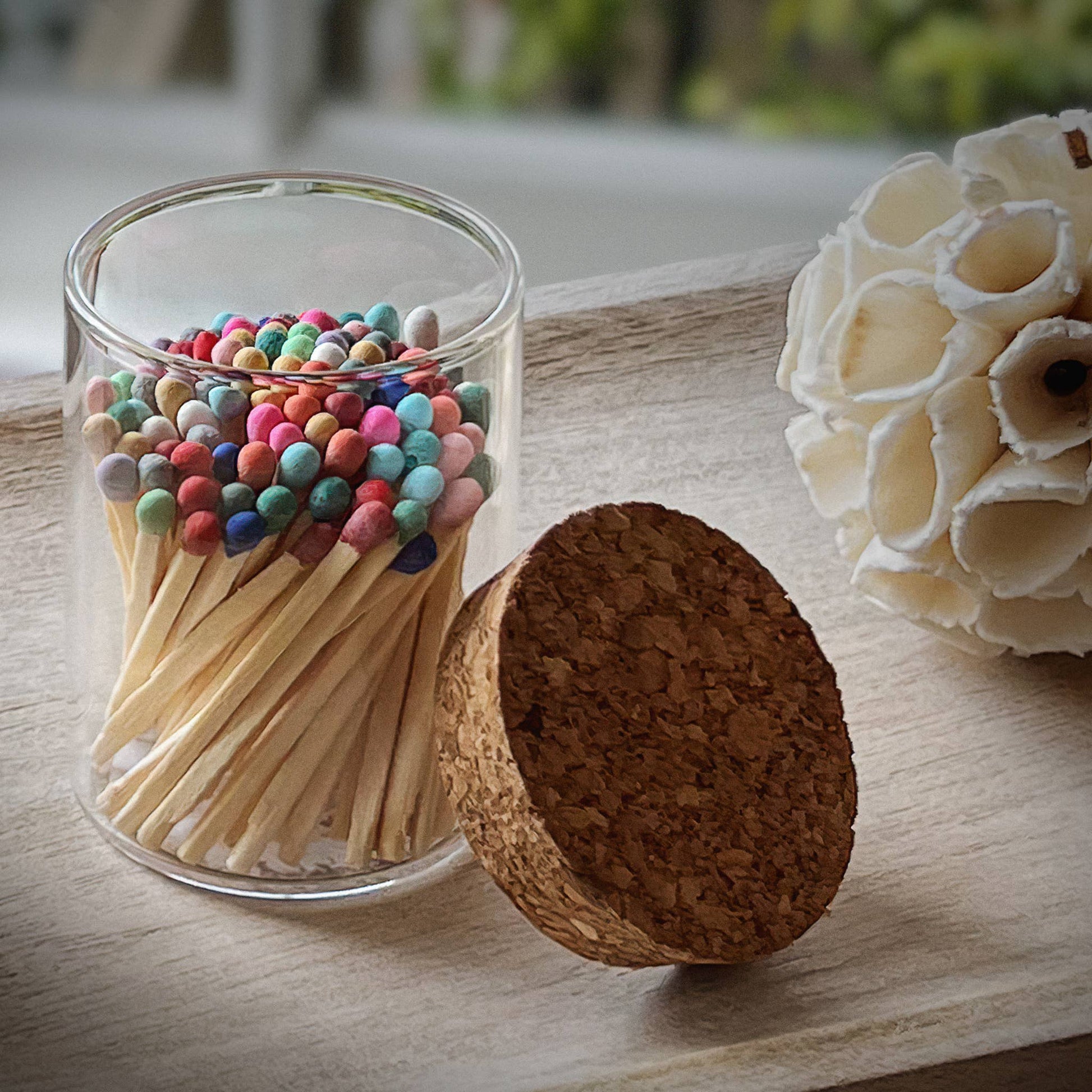 2" Matches in Cork Top Jar - Rainbow / Confetti