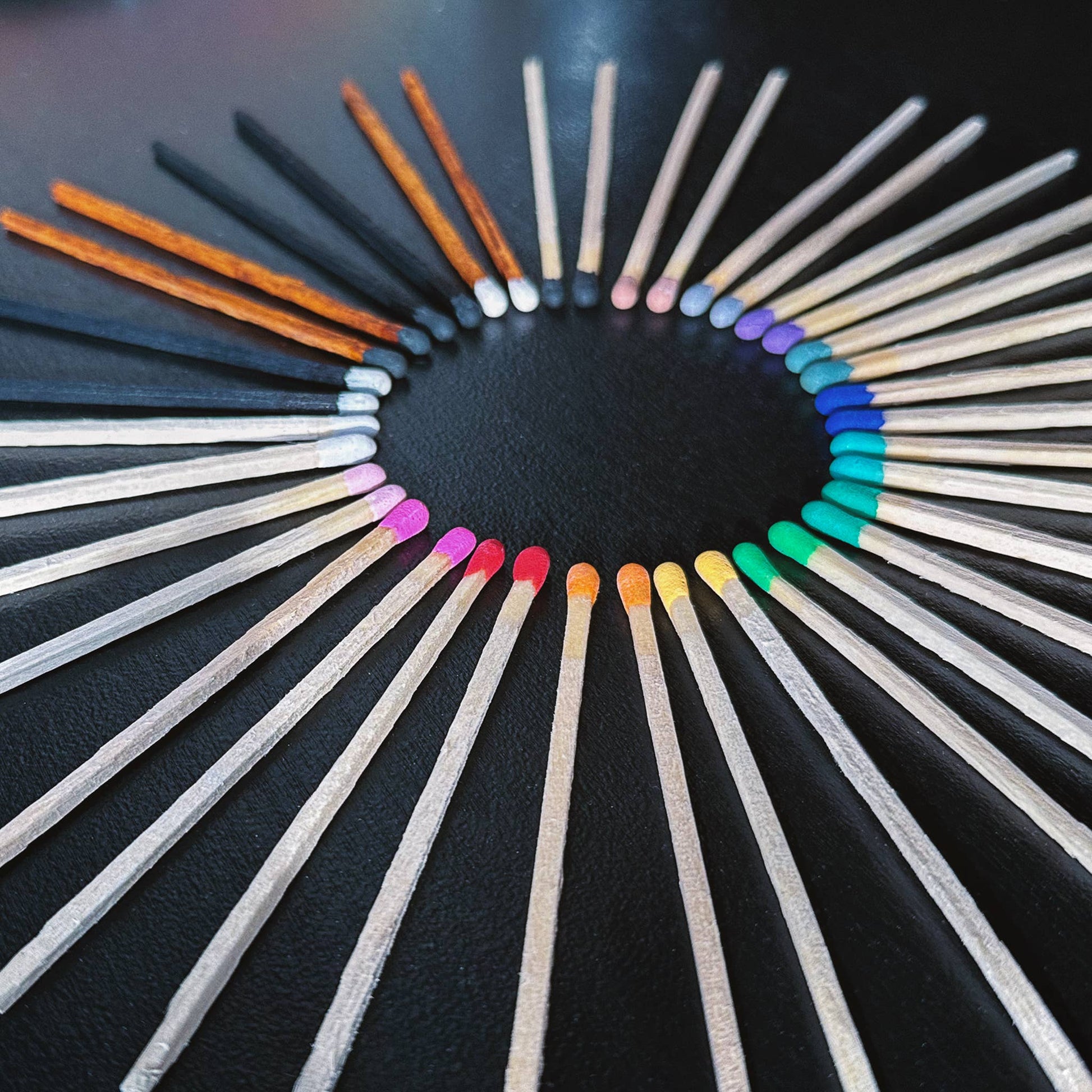 Bright rainbow colored tip matches are a crowd favorite. Colorful and diverse, they are an ideal pop of color (some people like to call them confetti colored).