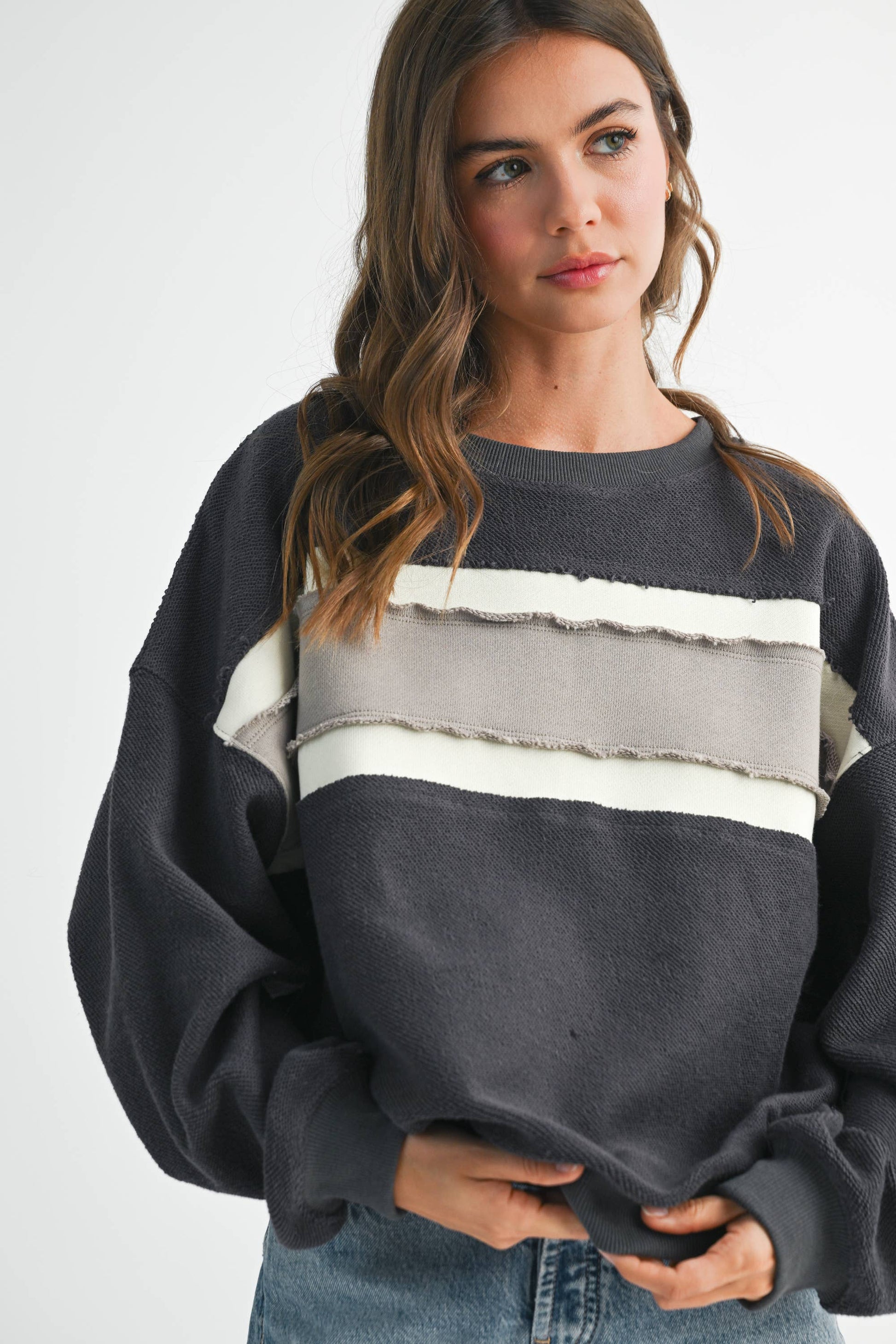 Add some color to your wardrobe with our Winnie Sweatshirt pullover featuring a relaxed fit silhouette with contrast stripe detailing at the front and dropped dolman sleeves for added shape.