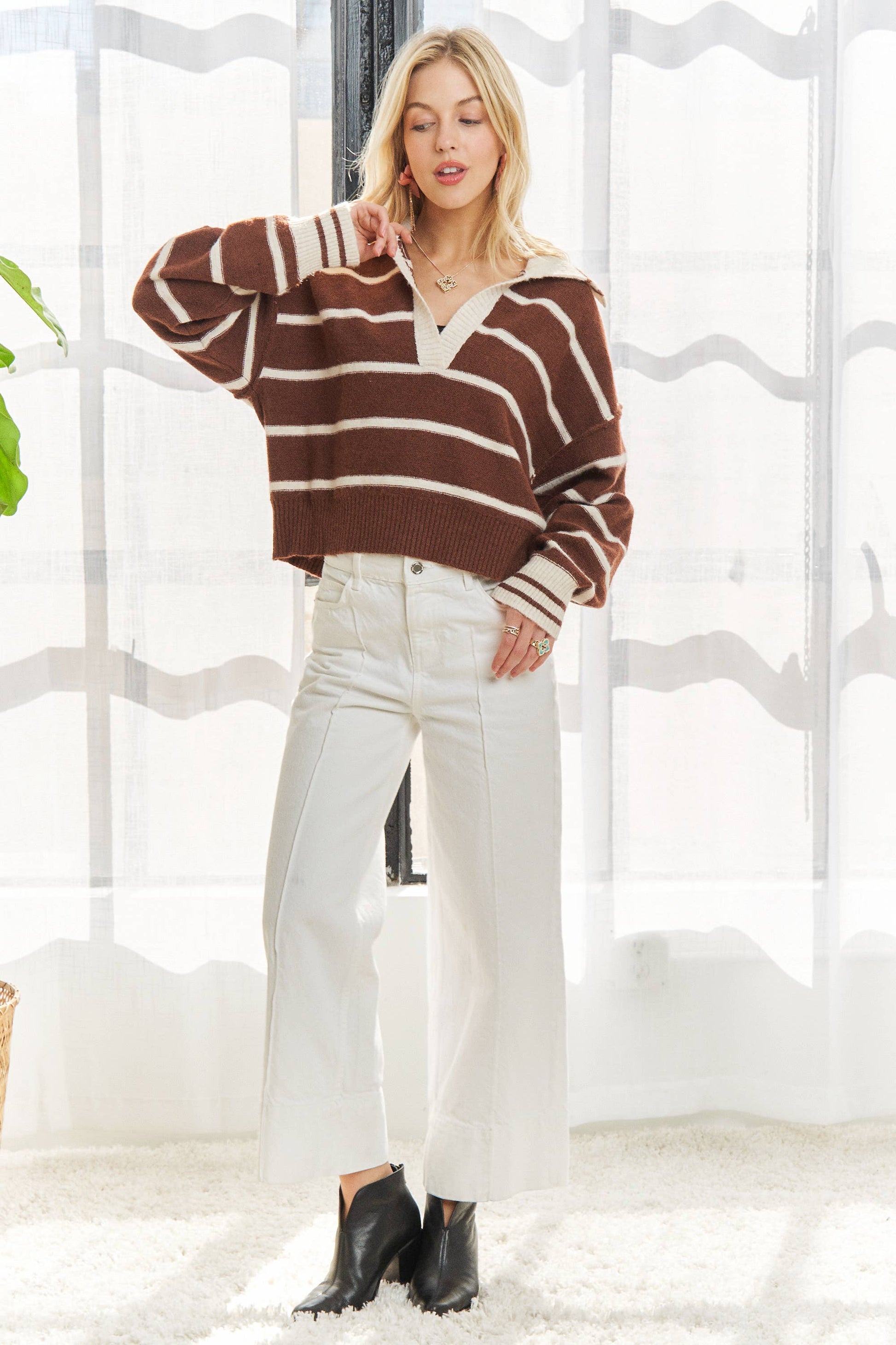 LONG SLEEVES STRIPED POLO SWEATER TOP
