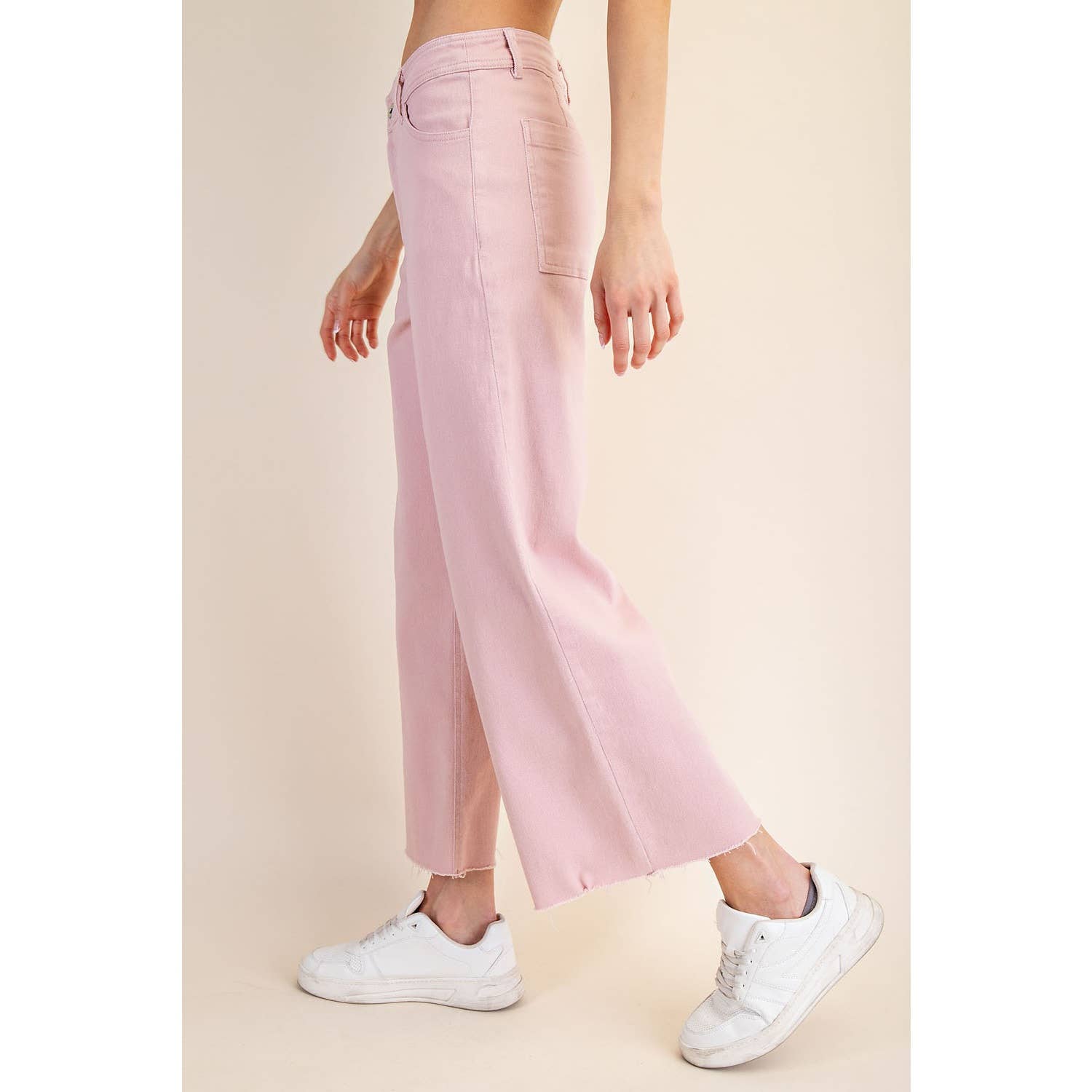 Experience effortless style with these wide-leg ankle pants, crafted from denim-feel cotton twill fabric. Featuring a relaxed silhouette and raw edge hemline, they add a touch of casual sophistication to any outfit.