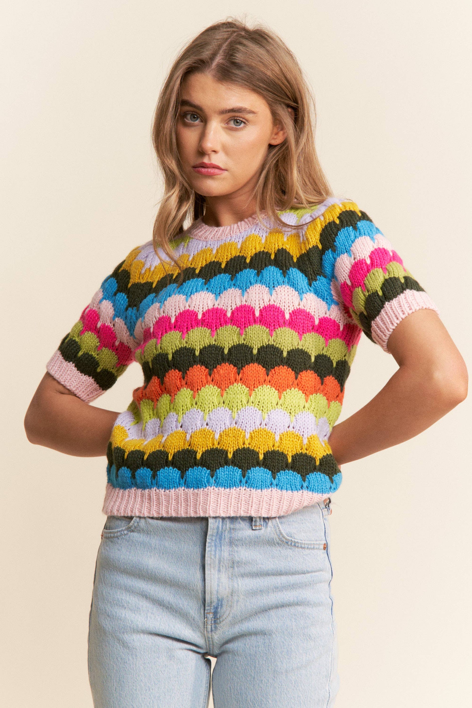 J.NNA - Multicolor Fish Scales Pattern Knit Sweater Top