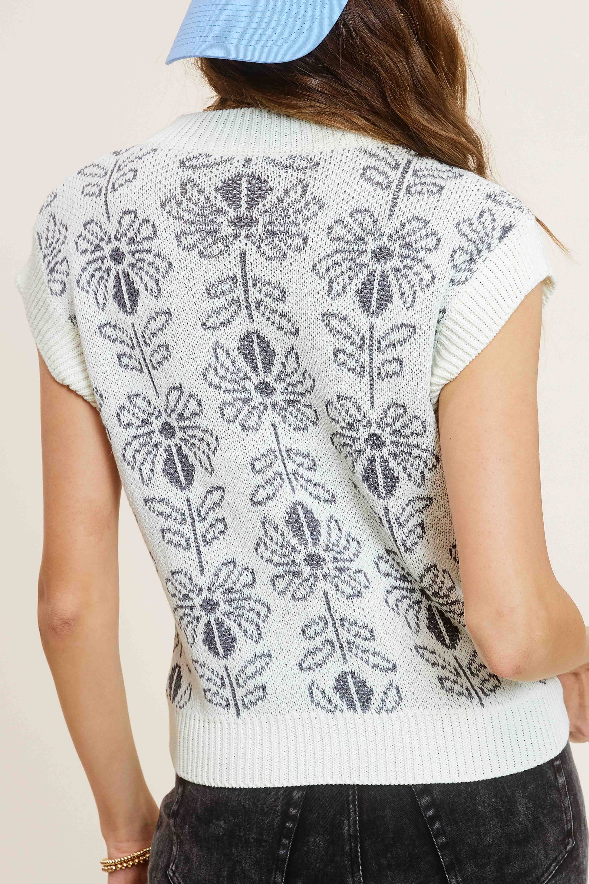 MCS3587-Floral Pattern Sleeveless Sweater Vest Top