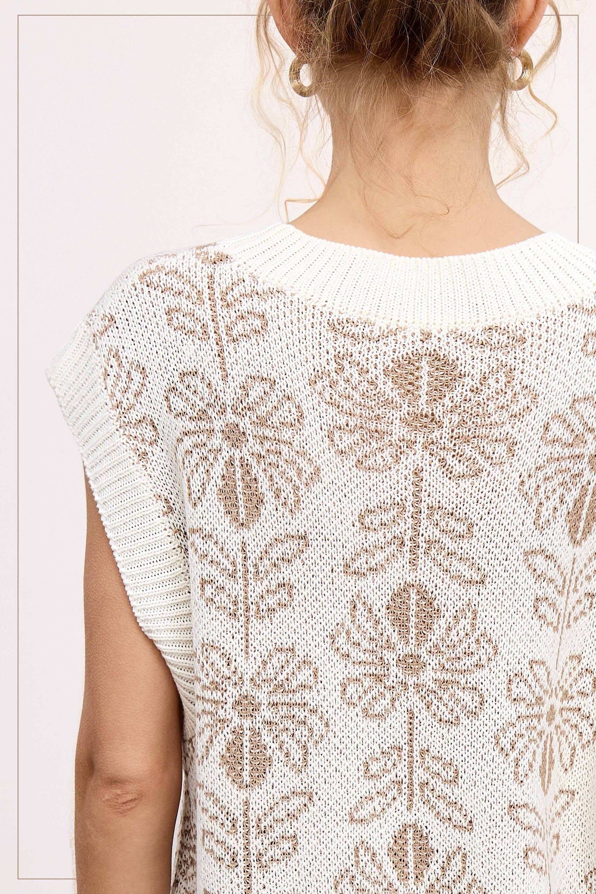 floral pattern, summer sweater, sweater vest, sleeveless, front pocket, layering piece