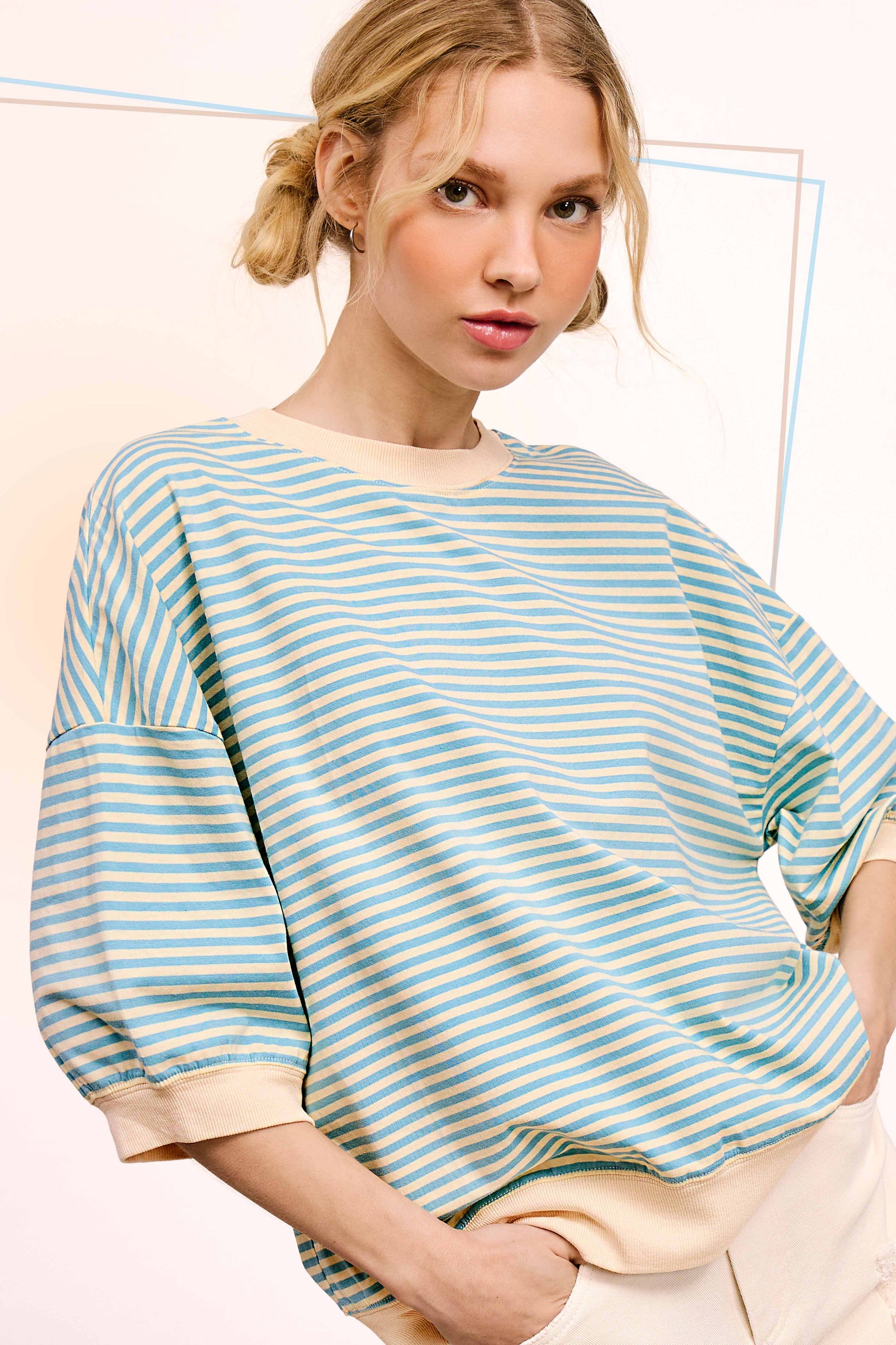 loose fit, short sleeve top, striped top, crew neckline, layering piece, loungewear, lightweight