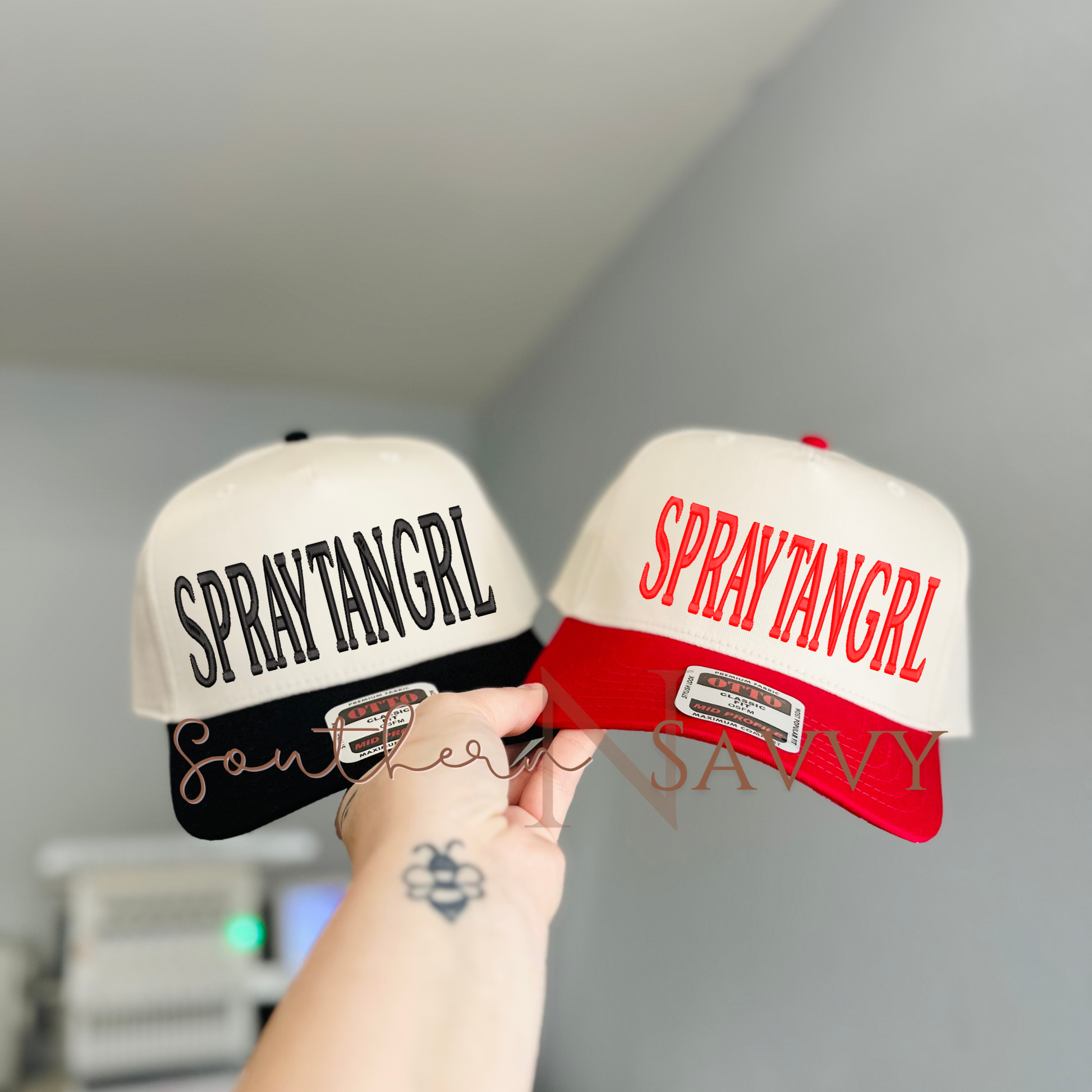 Welcome to Southern N Savvy, where we bring Texas style to your wardrobe. Our SPRAYTANGRL Embroidered Hat, crafted as an Otto Baseball Cap, is a stylish addition to any woman's accessories. This trucker hat features a unique 'SPRAYTANGRL' embroidery, adding a personalized touch to your look. Shop with us at Southern N Savvy, where we offer DTF printing and embroidery straight out of Texas.