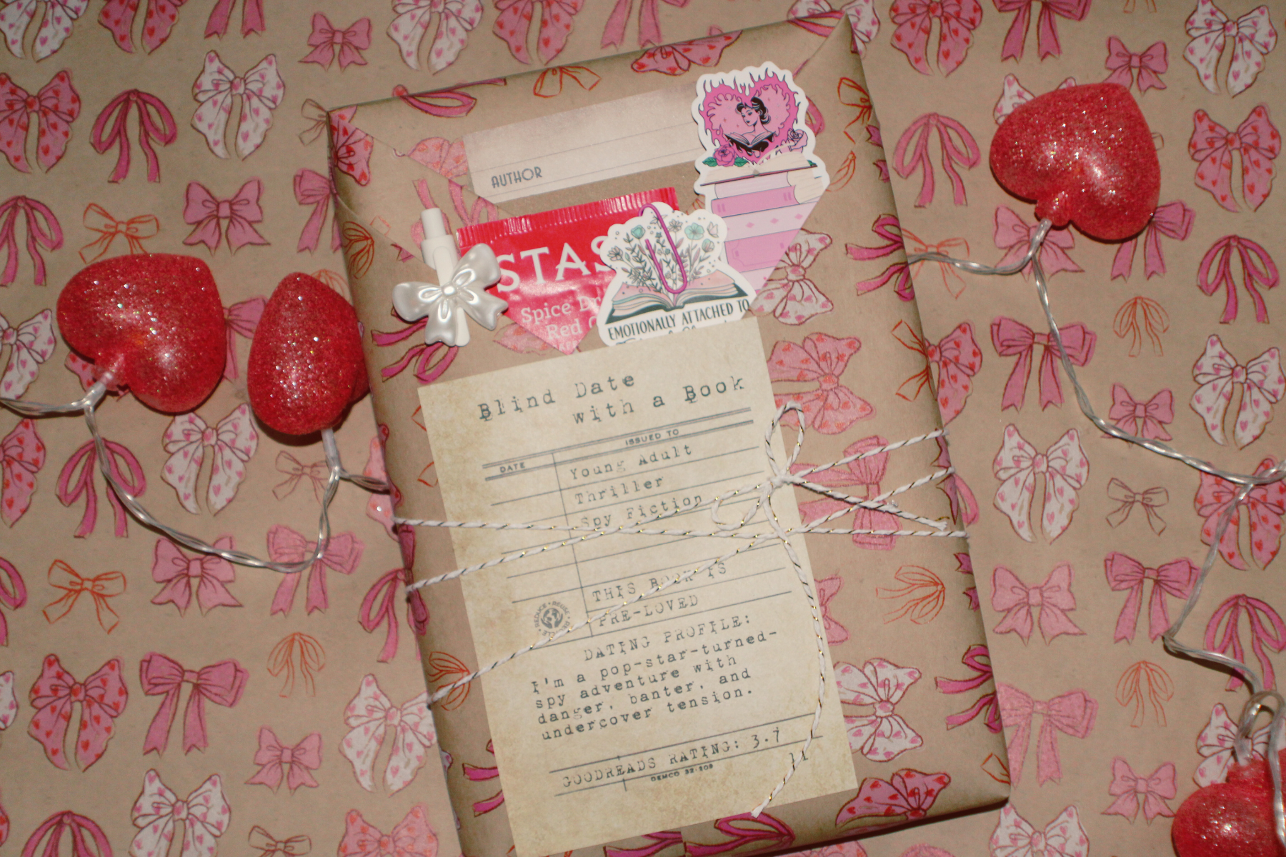 Each book comes with a cheeky “dating profile” label that reveals just enough to swoon over: genre, pre-loved notation, witty teaser, Goodreads rating, and any book/author awards. The rest? That’s a secret sealed under the paper. 💌✨